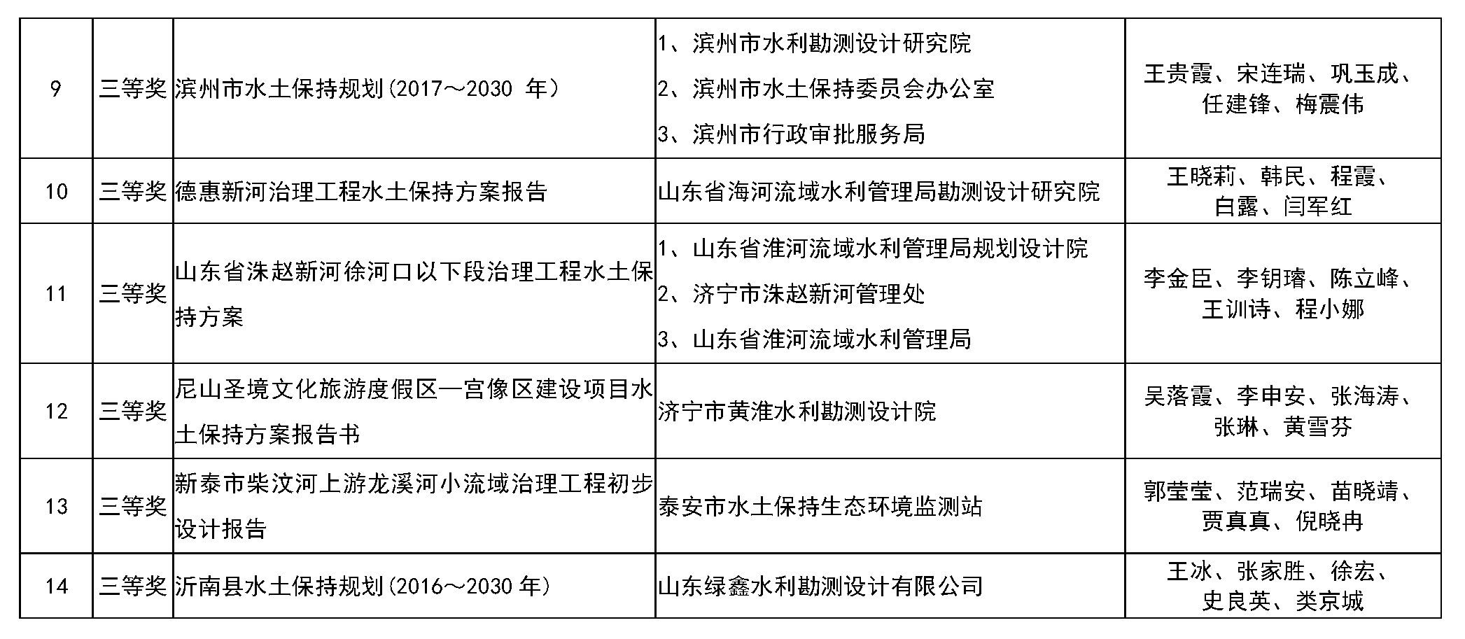 第一届山东水土保持学会科学技术奖评奖结果的公示