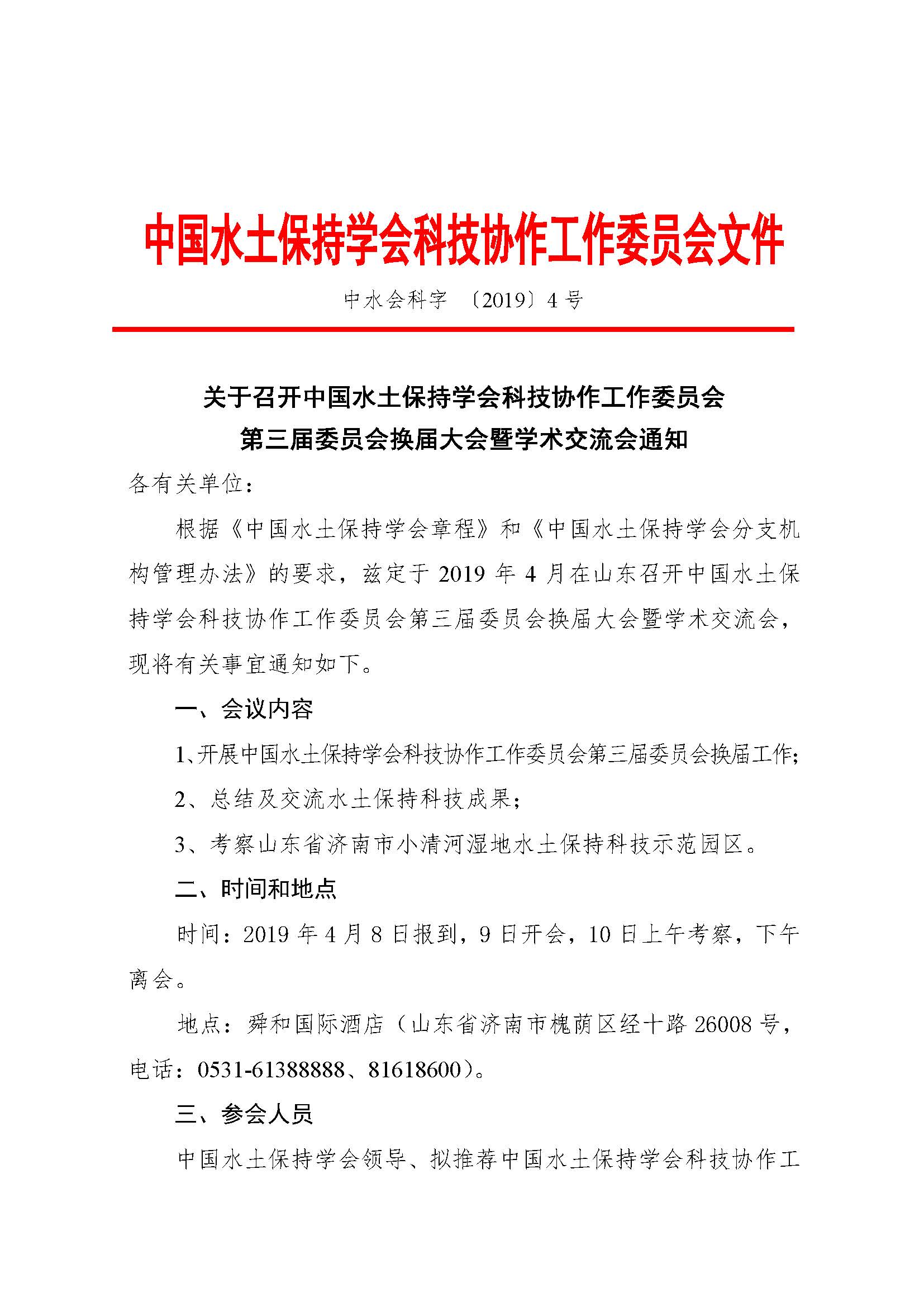 关于召开中国水土保持学会科协协作工作委员会第三届委员会换届大会暨学术交流会的通知