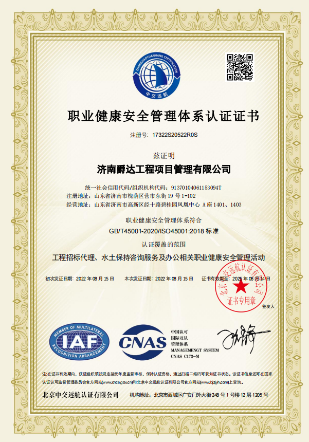 济南爵达工程项目管理有限公司 是经山东省工商行政管理局注册登记,具有独立法人资格的有限责任公司,成立于2013年,主要从事建筑工程项目管理、项目策划;建筑工程咨询;政府采购项目招标代理;招标代理;水土保持方案编制、监理、监测、技术咨询、技术服务;水土保持设施竣工验收技术评估报告编制等业务项目。