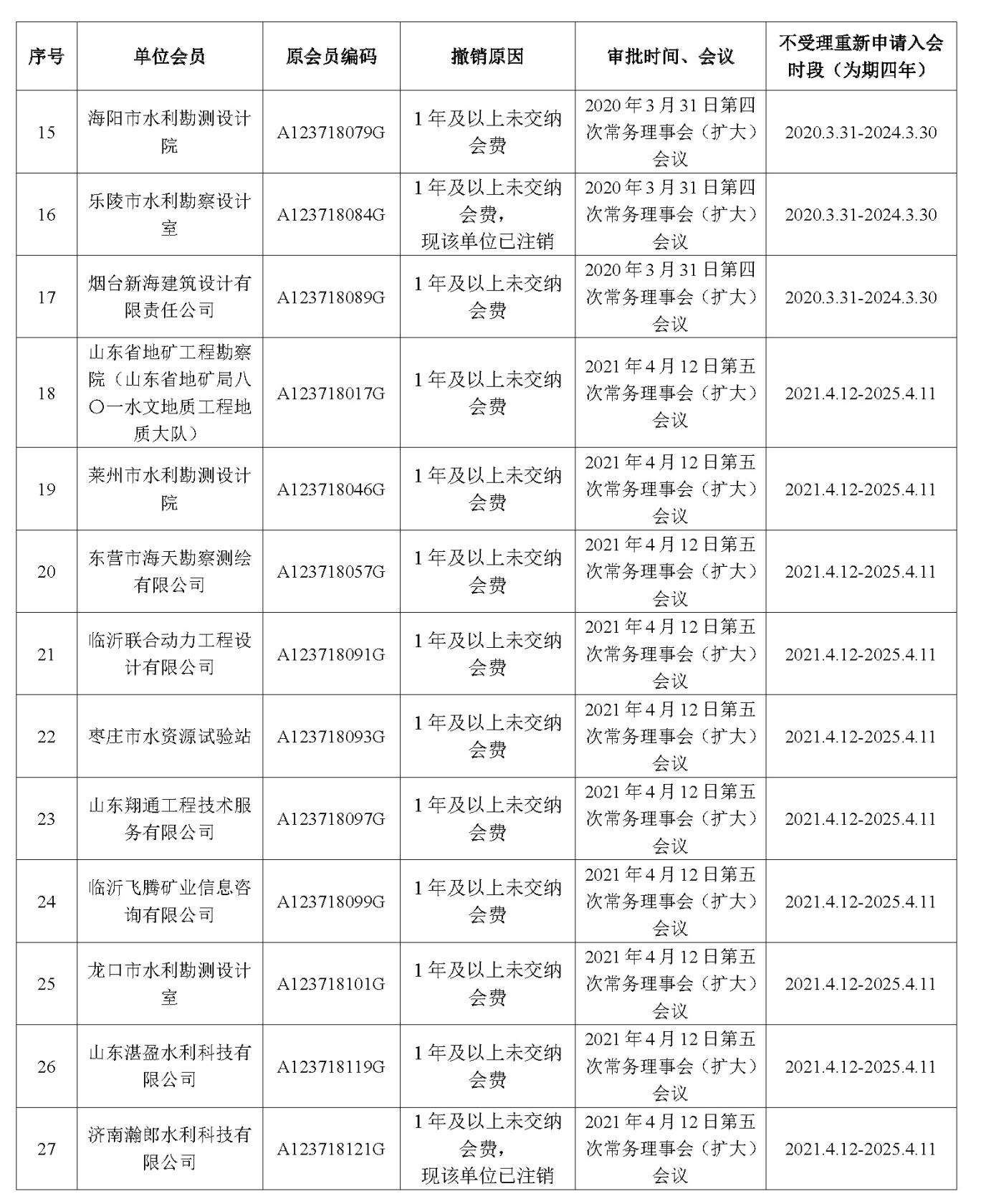 山东水土保持学会撤销个别会员资格名单(2021年12月31日更新)